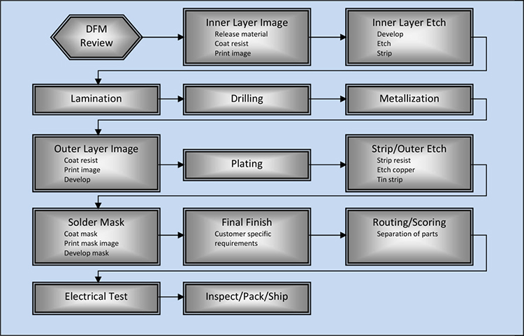 Prior to the start of Printed Circuit Board (PCB) manufacturing, engineers review all drawings, specifications and files to ensure manufacturability. Any identified concerns or issues or communicated back to the customer for clarification or correction. Once complete and all issues or concerns are resolved, the first step of the manufacturing process is to release material to etch the inner layer circuit patterns.